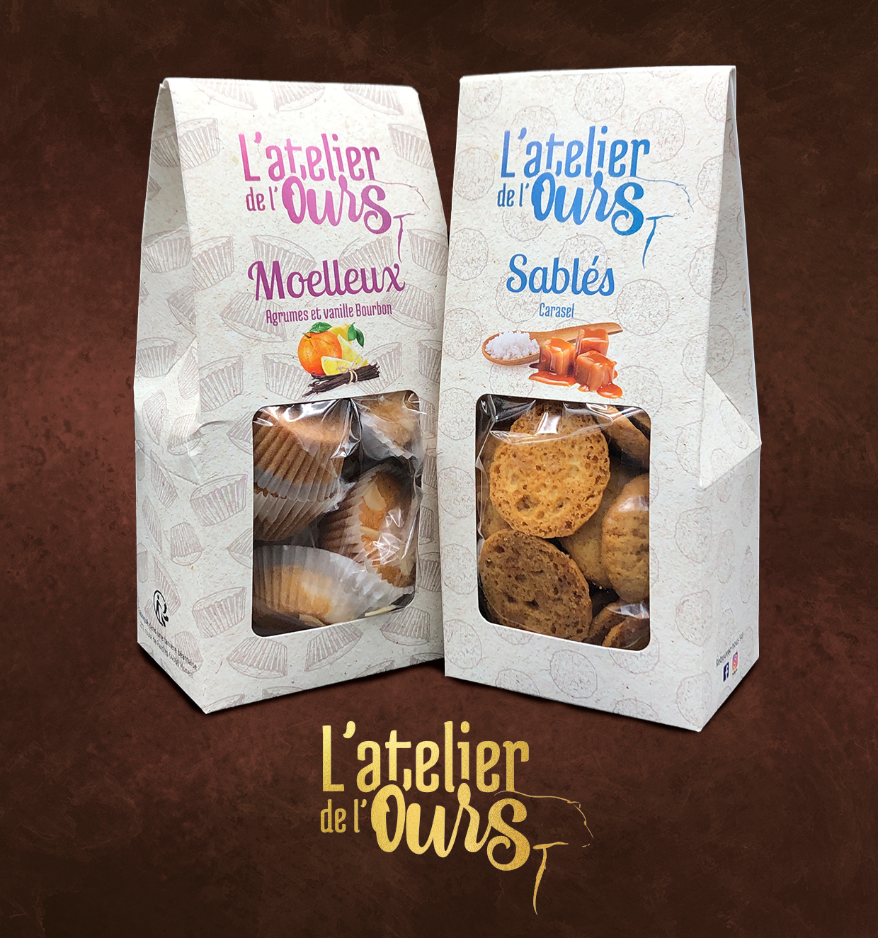 L'atelier de l'ours m'a fait confiance. Nous avons construit son identité visuelle en premier lieu puis une première gamme de packagings pour ses produits phare. Nous avons décliné, petit à petit, son identité visuelle sur d'autres produits avec une grande capacité d'adaptabilité en fonction de la cible et du type de produit.